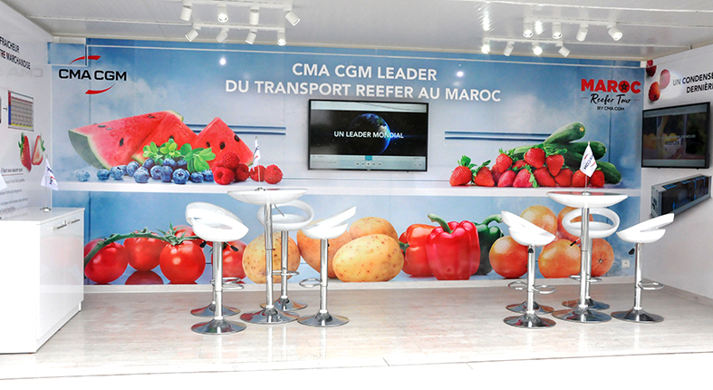 Le Groupe CMA CGM a annoncé hier à Casablanca l’inauguration de son conteneur itinérant, le « Maroc Reefer Tour », en présence notamment de représentants de l’Etablissement autonome de contrôle et de coordination des exportations (EACCE), des associations d’exportateurs, de la Chambre française de commerce et d’industrie du Maroc (CFCIM) et de l’Ambassade de France au Maroc.